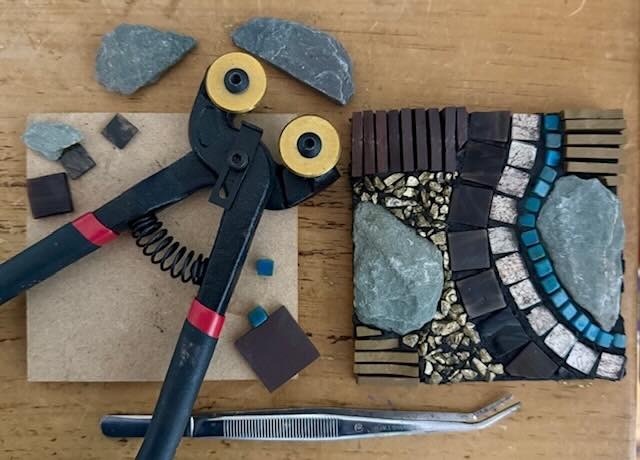 By the end of this workshop, participants will have created a small mosaic piece (such as a coaster or small wall tile) using the direct method. They will learn basic techniques, including tile cutting. placement & adhesive application.