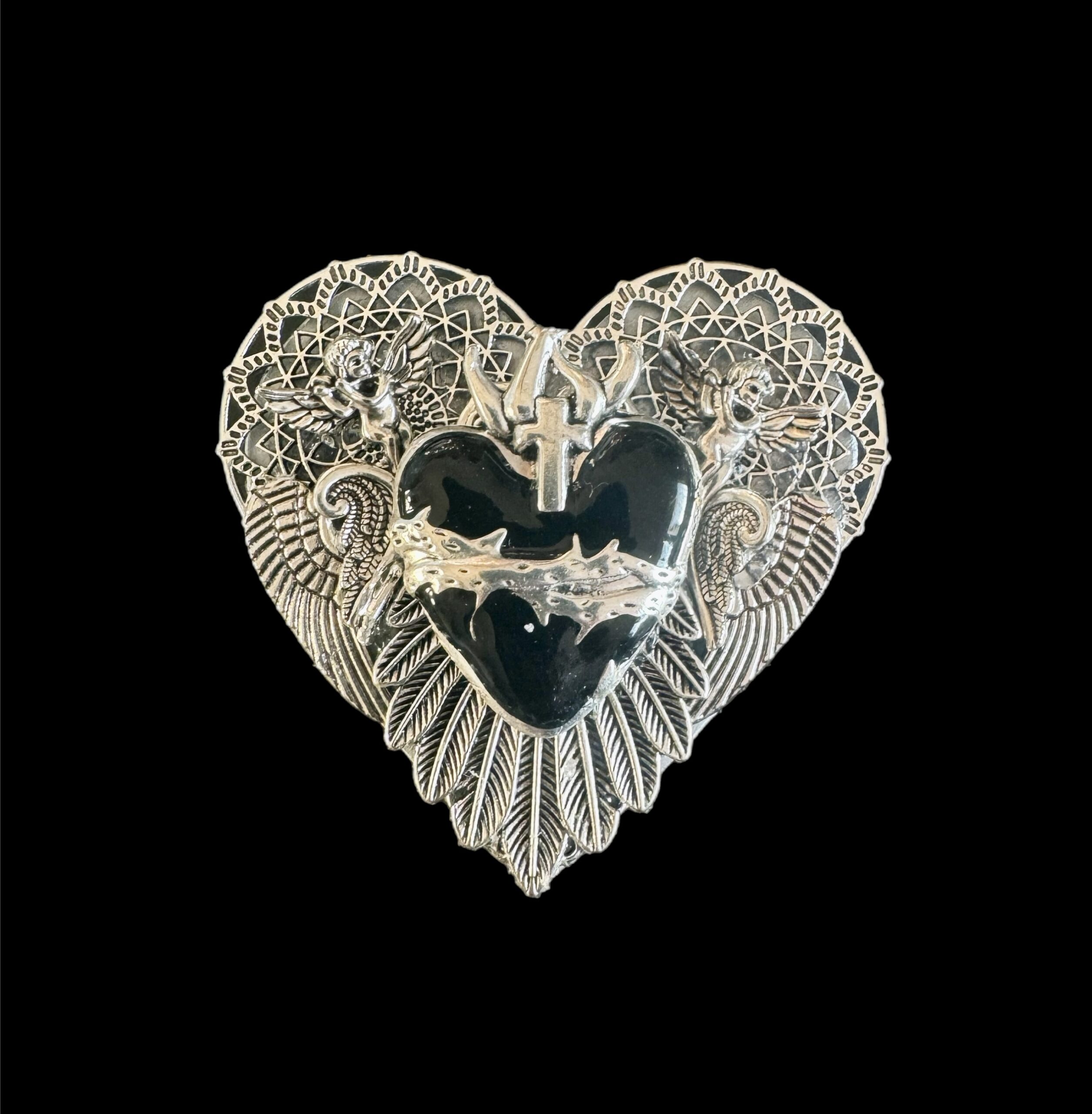 Dive into the art of assemblage in this captivating workshop, where you’ll transform forgotten treasures into a unique, visually rich “Sacred Heart” wall hanging or brooch. Inspired by the intricate designs and symbolic elements seen in the examples, you’ll create a truly personal piece from repurposed jewelry and found objects.