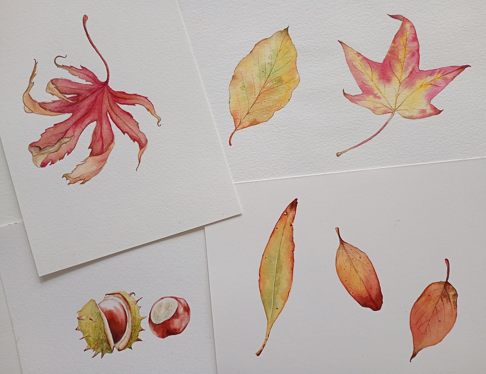 In this workshop she will demonstrate how to use watercolour to capture leaves, conkers and seed pods. There will be time to practice mixing some beautiful warm colours before experimenting with applying them in different ways.